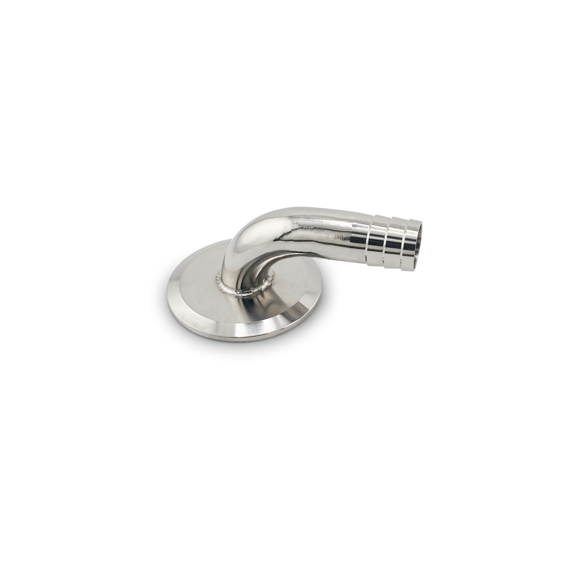 2" TC stainless steel 90 degree blow-off tube with a 3/4" OD barb safely and efficiently redirects CO2 produced during active fermentation. This blow-off tube can also be paired with a 2" TC butterfly valve to regulate CO2 flow during the fermentation or carbonation process.