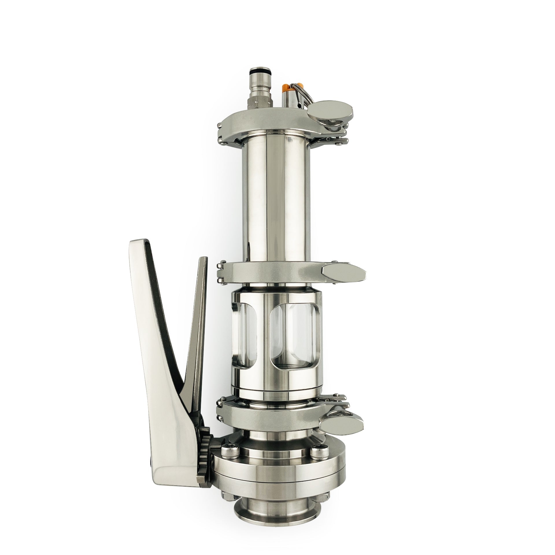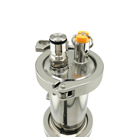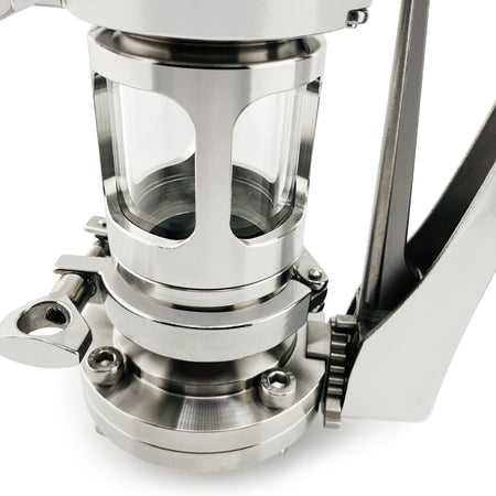 Take your brew to the next level with this large-capacity dry hop kit, the pro brewer's new best friend. Just load up to 14 ounces of your favorite pellet or whole cone hops into the spooled sight glass and oversized 2" butterfly valve, purge the system with CO2, and unleash an oxygen-free explosion of hoppy aroma into your brew. The built-in sight glass gives you a front-row seat to the hop drop, so you know your addition went off without a hitch. Complex, vibrant hop character has never come so easily.