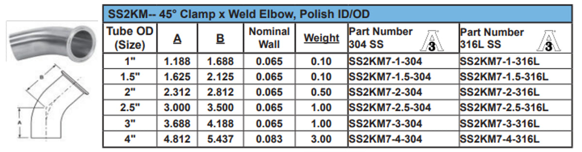 Sanitary Polished 45 deg Weld End - Tri Clamp