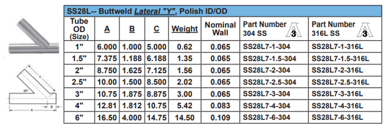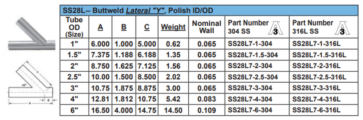 Sanitary Polished Lateral "Y" Weld Ends